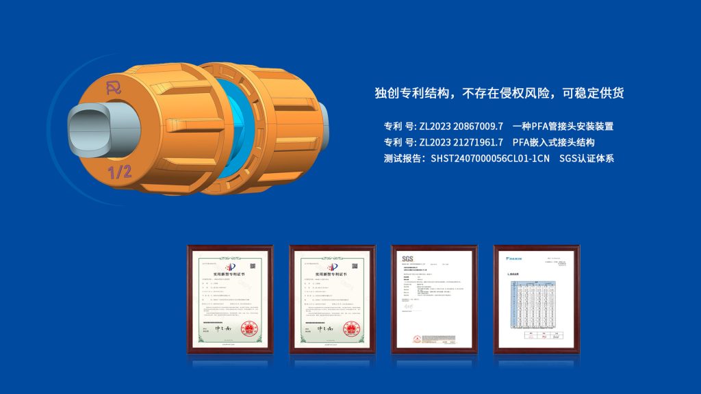 PFA注塑件因其耐高温、耐腐蚀、高纯度等特性,广泛应用于半导体、医疗、生物制药、化工、电子电气、食品、新能源等行业,如化学管道、泵体、医疗导管、电缆绝缘层等。